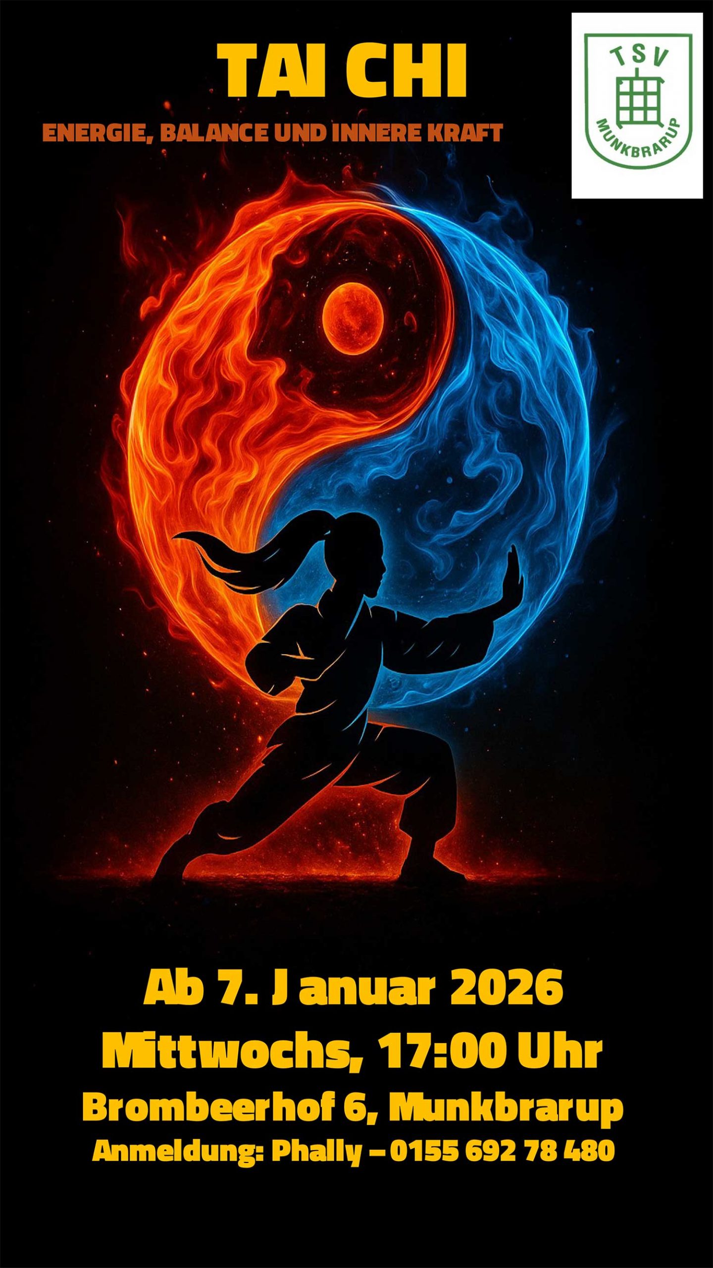 Phally wohnt seit kurzem in Munkbrarup und möchte ab dem 7. Januar 2026 im Brombeerhof einen Tai Chi Kurs anbieten.